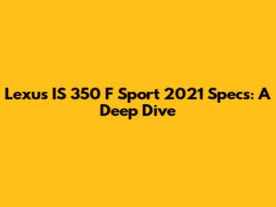 Hey guys! Let's dive into the Lexus IS 350 F Sport 2021 specs. If you're eyeing this beauty, you're probably curious about what's under the hood and what features make it stand out. Well, you're in the right place! We're going to break down everything from performance and engine details to interior features and tech specs. The Lexus IS 350 F Sport 2021 is a fantastic blend of luxury and sporty performance, and understanding its specifications will help you appreciate what it brings to the table. Whether you're a seasoned car enthusiast or a first-time buyer, this guide will provide all the juicy details you need to know. So, buckle up, and let's get started!