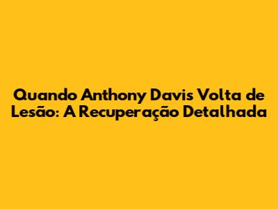 Então, quando Anthony Davis volta de lesão? A resposta exata ainda é incerta, mas esperamos que este artigo tenha fornecido uma visão clara da situação. Fiquem ligados para mais atualizações e torçam por uma recuperação rápida e segura de AD! Go Lakers!