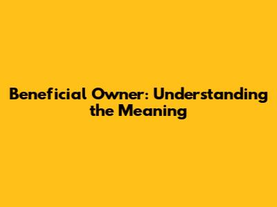 Beneficial Owner: Understanding The Meaning