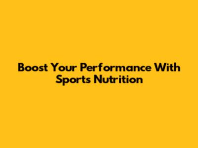 Boost Your Performance With Sports Nutrition