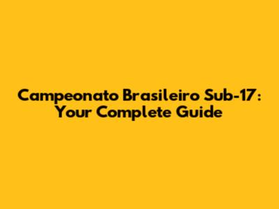 Campeonato Brasileiro Sub-17: Your Complete Guide