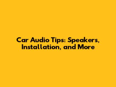 Car Audio Tips: Speakers, Installation, And More