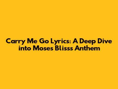 Carry Me Go Lyrics: A Deep Dive Into Moses Bliss's Anthem