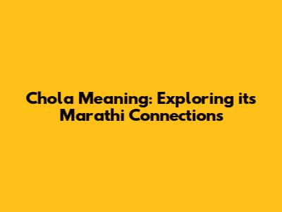 Chola Meaning: Exploring Its Marathi Connections