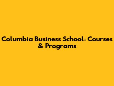 Columbia Business School: Courses & Programs