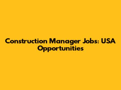 Construction Manager Jobs: USA Opportunities