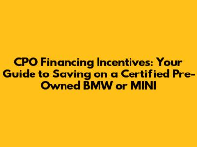 Hey there, car enthusiasts! Are you in the market for a sweet ride? Maybe a luxurious BMW or a sporty MINI? If so, you've probably heard about Certified Pre-Owned (CPO) programs. They're a fantastic way to snag a nearly-new vehicle without the brand-new price tag. But here's where it gets even better: CPO financing incentives can unlock some serious savings. Let's dive into the world of CPO financing, break down the benefits, and help you navigate the incentives so you can drive away happy in your dream car. We'll explore everything from interest rates to manufacturer-backed programs and how to find the best deals. Get ready to learn how to make your automotive dreams a reality, all while keeping your wallet happy!