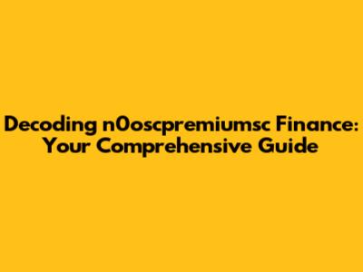 Decoding N0oscpremiumsc Finance: Your Comprehensive Guide