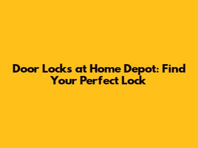 Door Locks At Home Depot: Find Your Perfect Lock
