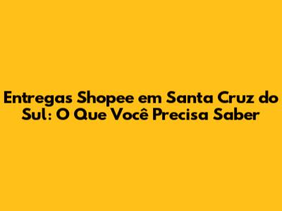 Entregas Shopee Em Santa Cruz Do Sul: O Que Você Precisa Saber