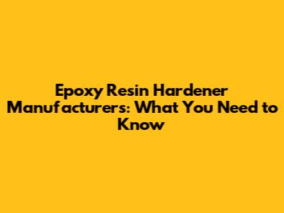 Epoxy Resin Hardener Manufacturers: What You Need To Know