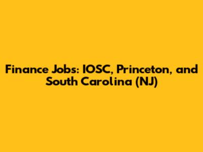 Finance Jobs: IOSC, Princeton, And South Carolina (NJ)