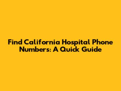Find California Hospital Phone Numbers: A Quick Guide
