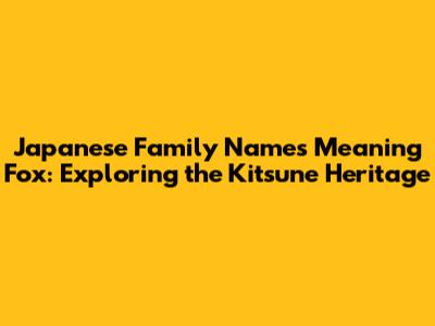 Fox-Related Japanese Last Names: Origins & Meanings