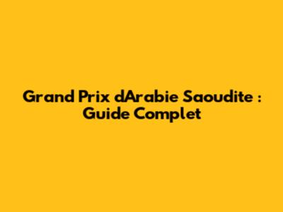 Grand Prix D'Arabie Saoudite : Guide Complet