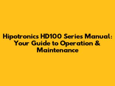 Hipotronics HD100 Manual: Your Guide To Operation & Maintenance