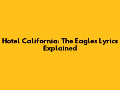 Hey guys! Ever get chills listening to "Hotel California" by the Eagles? I know I do. This song is an absolute classic, right? But let's be real, the lyrics are kinda cryptic, and everyone has their own theory about what it really means. Today, we're diving deep into the iconic "Hotel California" lyrics, trying to unravel some of the mystery behind this legendary track. It's a song that's been stuck in people's heads and debated for decades, and for good reason. The mood, the imagery, the unforgettable guitar solo – it all adds up to a masterpiece that continues to captivate listeners. We'll break down the verses, explore the symbolism, and see if we can get a clearer picture of what Don Henley and Glenn Frey might have been trying to tell us. So grab your headphones, maybe a nice cold drink, and let's get started on this lyrical journey. It’s going to be a wild ride, just like checking into the Hotel California itself!