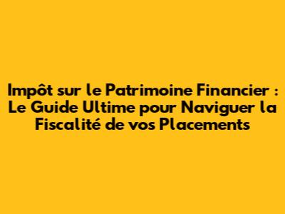 Salut les amis ! Prêts à plonger dans le monde fascinant et parfois un peu flou de l'impôt sur le patrimoine financier ? On va décortiquer ensemble tout ce que vous devez savoir pour gérer au mieux vos investissements financiers et minimiser votre facture fiscale. Que vous soyez un pro de la finance ou un débutant curieux, ce guide est fait pour vous. Accrochez-vous, ça va être passionnant !