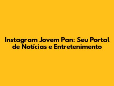 O Instagram da Jovem Pan se tornou a sua fonte diária de notícias e entretenimento. A plataforma oferece uma variedade de conteúdos, desde notícias de última hora até entrevistas exclusivas e bastidores. Você terá acesso a análises políticas, econômicas e esportivas, além de conteúdos divertidos e interativos, como enquetes, caixas de perguntas e lives. A interação com o público é constante, com a equipe respondendo aos comentários, mensagens e menções dos seguidores. O Instagram da Jovem Pan é a maneira perfeita de se manter informado, divertido e conectado com o mundo. Não perca essa chance de fazer parte da comunidade que está sempre ligada no que acontece no Brasil e no mundo! Siga a Jovem Pan no Instagram e aproveite todos os benefícios que a plataforma tem a oferecer!