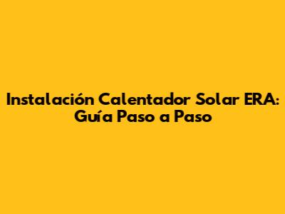 Instalación Calentador Solar ERA: Guía Paso A Paso