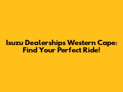 Isuzu Dealerships Western Cape: Find Your Perfect Ride!