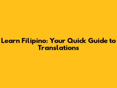 Learn Filipino: Your Quick Guide To Translations
