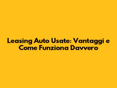 Leasing Auto Usate: Vantaggi E Come Funziona Davvero