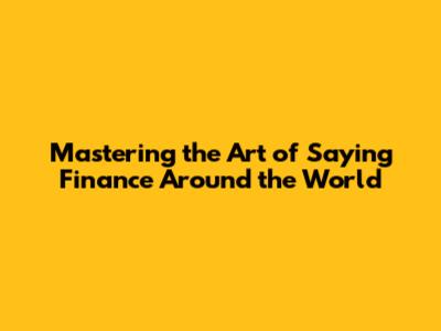 Mastering The Art Of Saying Finance Around The World