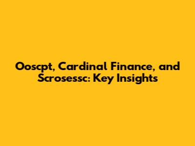 Ooscpt, Cardinal Finance, And Scrosessc: Key Insights