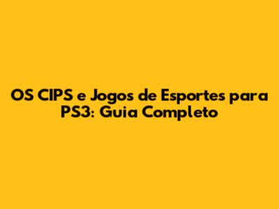 OS CIPS E Jogos De Esportes Para PS3: Guia Completo
