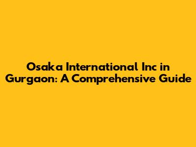 Osaka International Inc In Gurgaon: A Comprehensive Guide