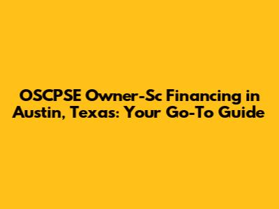 OSCPSE Owner-Sc Financing In Austin, Texas: A Complete Guide