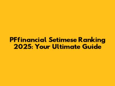 PFfinancial Setimese Ranking 2025: Your Guide