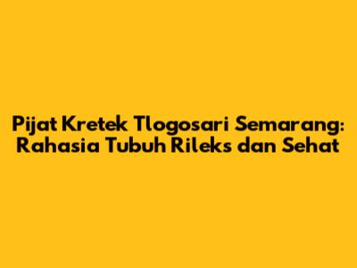 Pijat Kretek Tlogosari Semarang: Relaksasi & Penyembuhan Alami