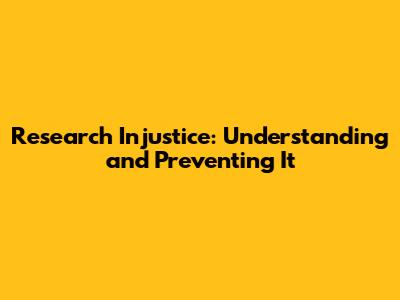 Research Injustice: Understanding And Preventing It
