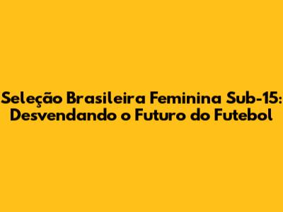 Seleção Brasileira Feminina Sub-15: Desvendando O Futuro Do Futebol