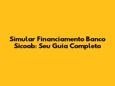 Simular Financiamento No Banco Sicoob: Guia Completo