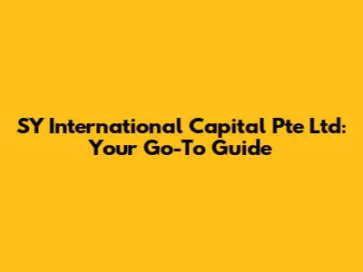 SY International Capital Pte Ltd: Your Go-To Guide