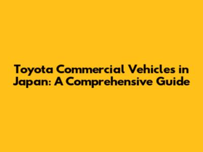 Toyota Commercial Vehicles In Japan: A Comprehensive Guide