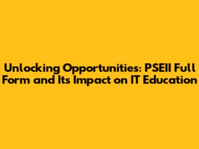 Unlocking Opportunities: PSEII Full Form And Its Impact On IT Education