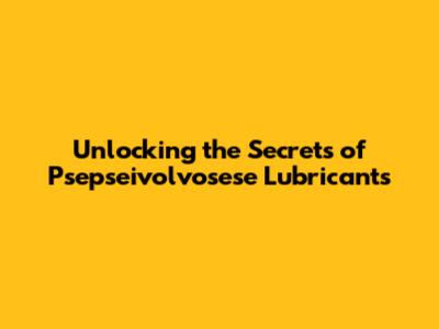 Unlocking The Secrets Of Psepseivolvosese Lubricants
