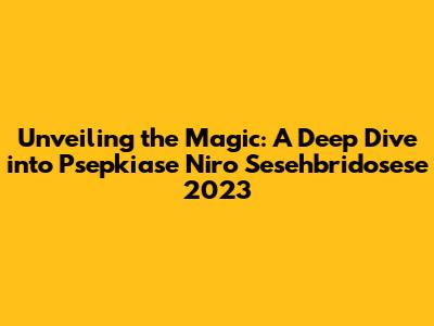 Unveiling The Magic: A Deep Dive Into Psepkiase Niro Sesehbridosese 2023