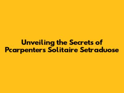 Unveiling The Secrets Of Pcarpenters Solitaire Setraduose